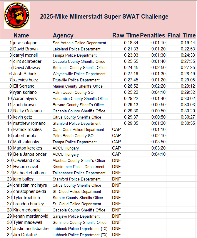 2025 Mike Milmerstadt Super SWAT COP Challenge